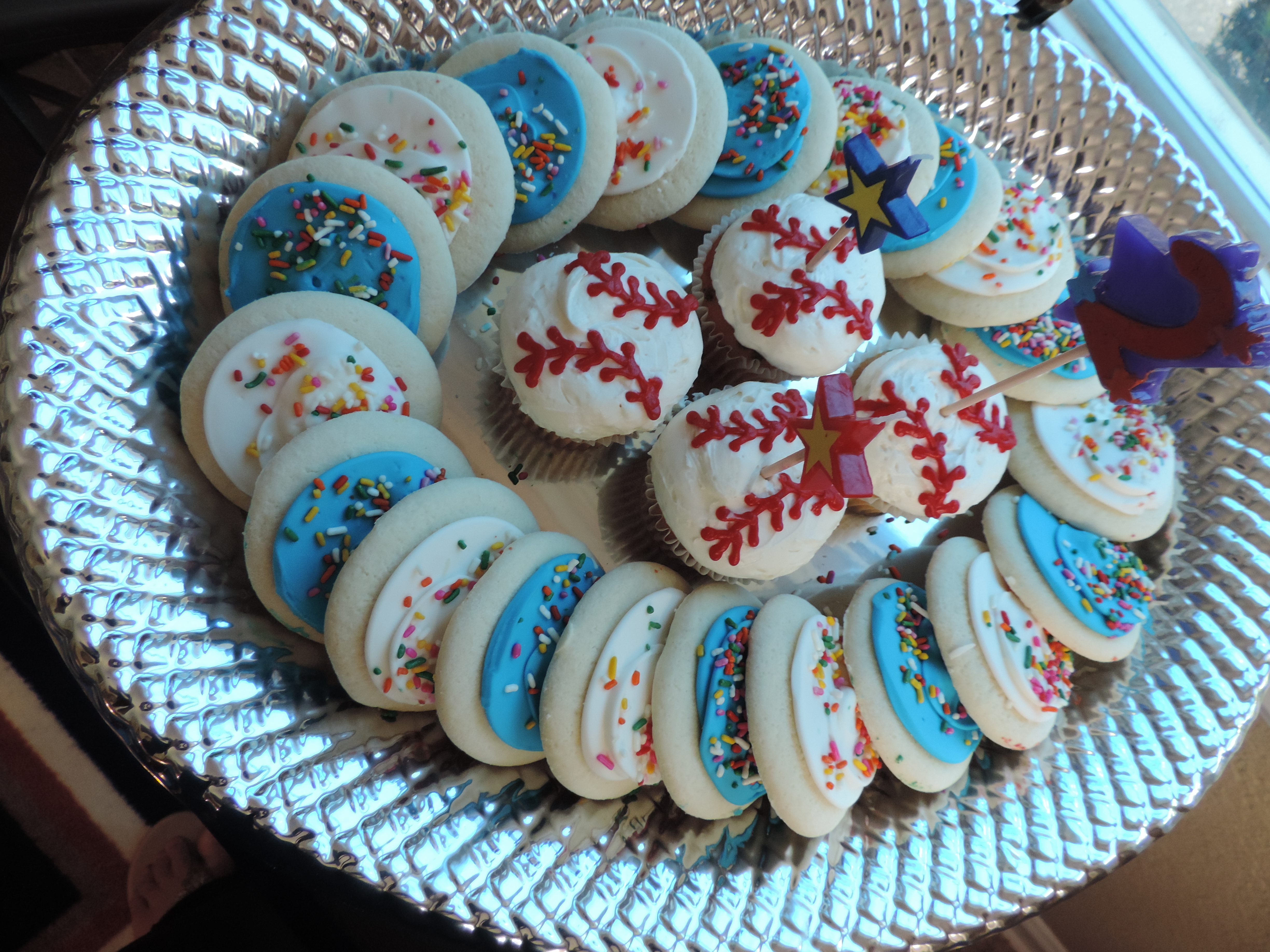 I love to cook, but am not much of a baker. I’m working REALLY hard to get better, but I certainly cannot take credit for the desserts. I worked with a local baker to make baseball cupcakes and Brewer colored cookies. She was so sweet (no pun intended) and I love how they turned out! As you can tell – Noah enjoyed them 🙂