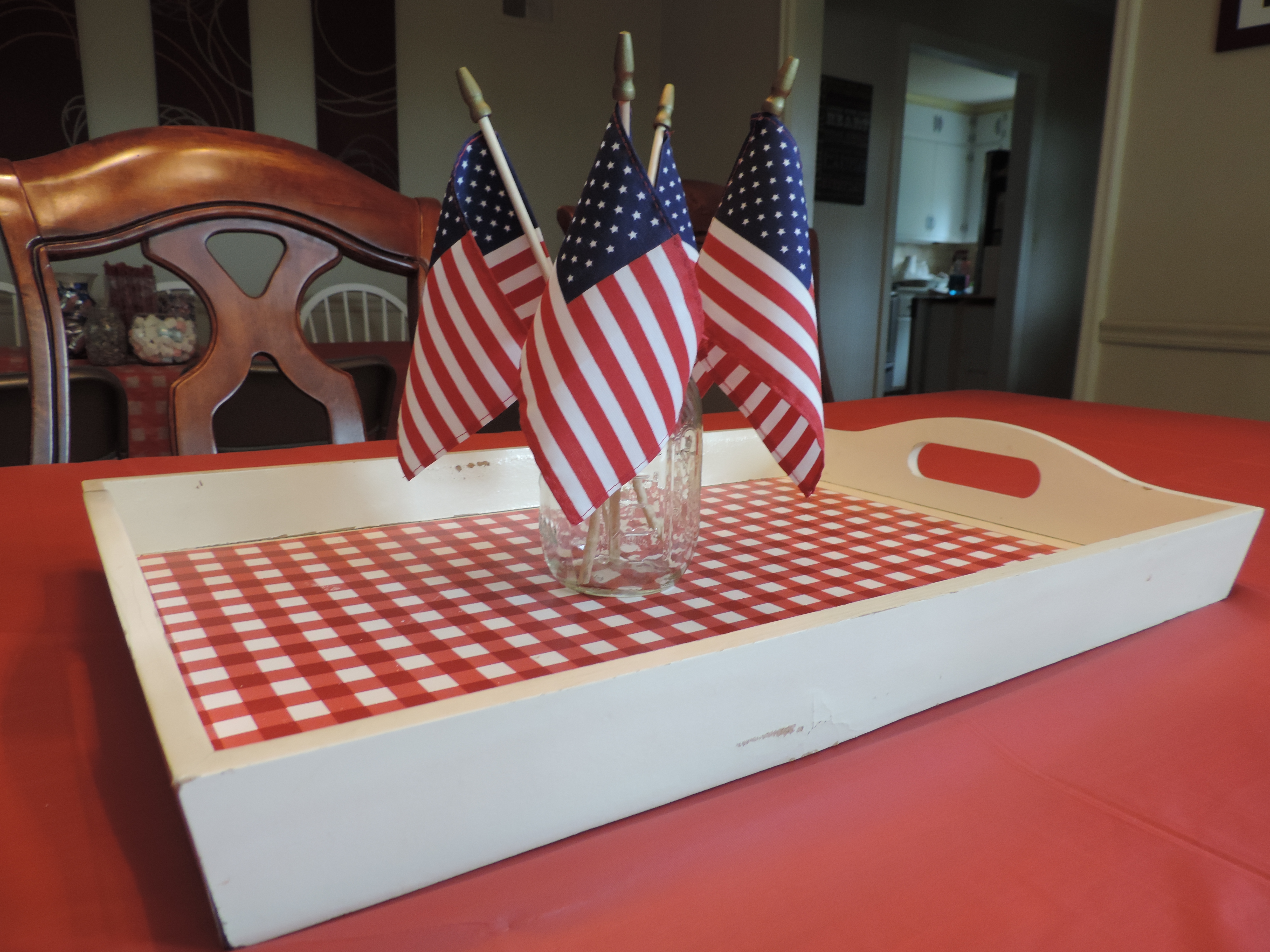 As I’ve mentioned, my son is a sports nut. His birthday is in July, so it coincides nicely with baseball season and 4th of July, which made a baseball/Americana themed 2nd birthday a no-brainer. I started with some simple table settings. For the tablecloths I used solid red that I popped with a red and white picnic gingham check runner. I had precisely ten thousand centerpiece ideas. As always my thoughts were big – bigger than I could execute. I had tried growing grass in little planters and was going to place a baseball at the center of each. Well, my green thumb is actually blue and the grass never grew. I should have reacted to the early signs, but the Pollyanna in me kept thinking it would miraculously sprout. My reluctance to accept the truth lead to a last minute scramble for centerpieces. I ended up ransacking the bin of 4th of July party supplies that I had just put away for some American flags. I placed them in a simple mason jar and called it a day on table one. For table two I grouped various sized vases and bowls and filled with baseball/Americana themed treats: licorice, fun sized Baby Ruth bars, bubble gum, marshmallows and sunflower seeds. I repeated variations of both on the five remaining tables.
